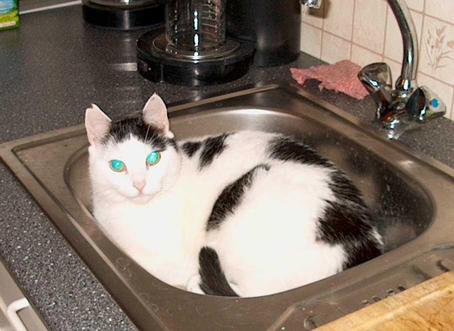 - Last but not least - FELIX! Die "Chefin" in der Wohnung und ein echtes Zauberwesen - Felix haben wir Anfang 2000 aus der Tierklinik bekommen und sie war gleich vom ersten Tag an hier "Zuhause" und ist einfach nur lieb und zutraulich. Hier ein ganz typisches Bild, sie fühlt sich an den unmöglichsten Plätzen wohl ;-)) |